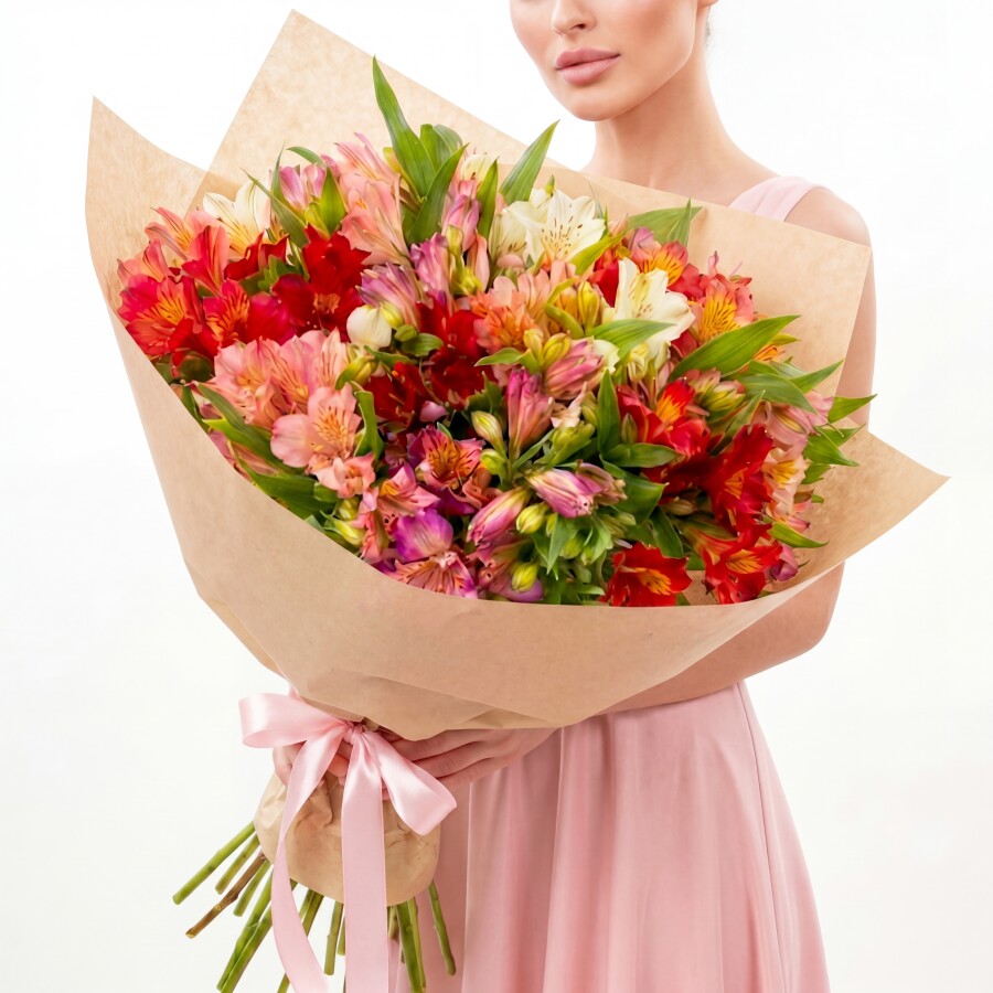 Букет из 29 Альстромерий Микс можно преподнести близким родственникам на любой праздник или без повода.