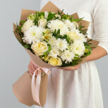 Если речь идет о традиционном букете цветов для мамы, современная флористика предлагает широчайший ассортимент таких композиций – больших и маленьких, классических красивых и очень оригинальных, шикарных и нежных скоромных. Разумеется, лучше выбрать букет из тех цветов, которые любит мама – роз, хризантем, астр, лилий. Но если особых предпочтений у нее нет, можно остановиться на одном из следующих вариантов:
