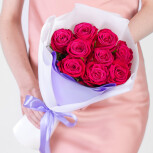 9 Ярко-Розовых Роз Ревиваль (40 см)
