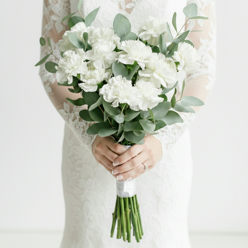 Букет невесты "Диантус и Эвкалипт"