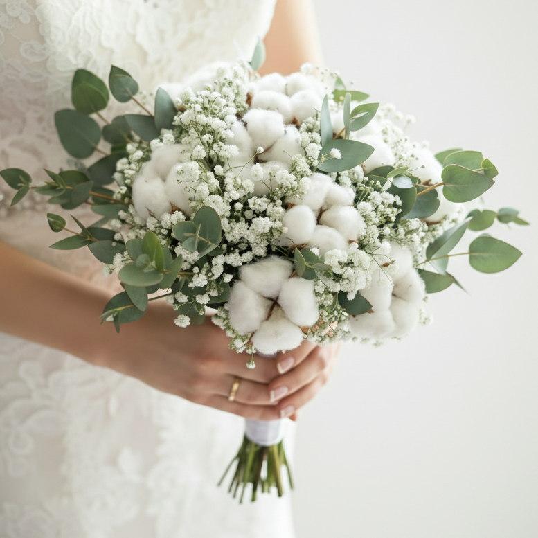 Букет невесты "Хлопок, Гипсофила и Эвкалипт"