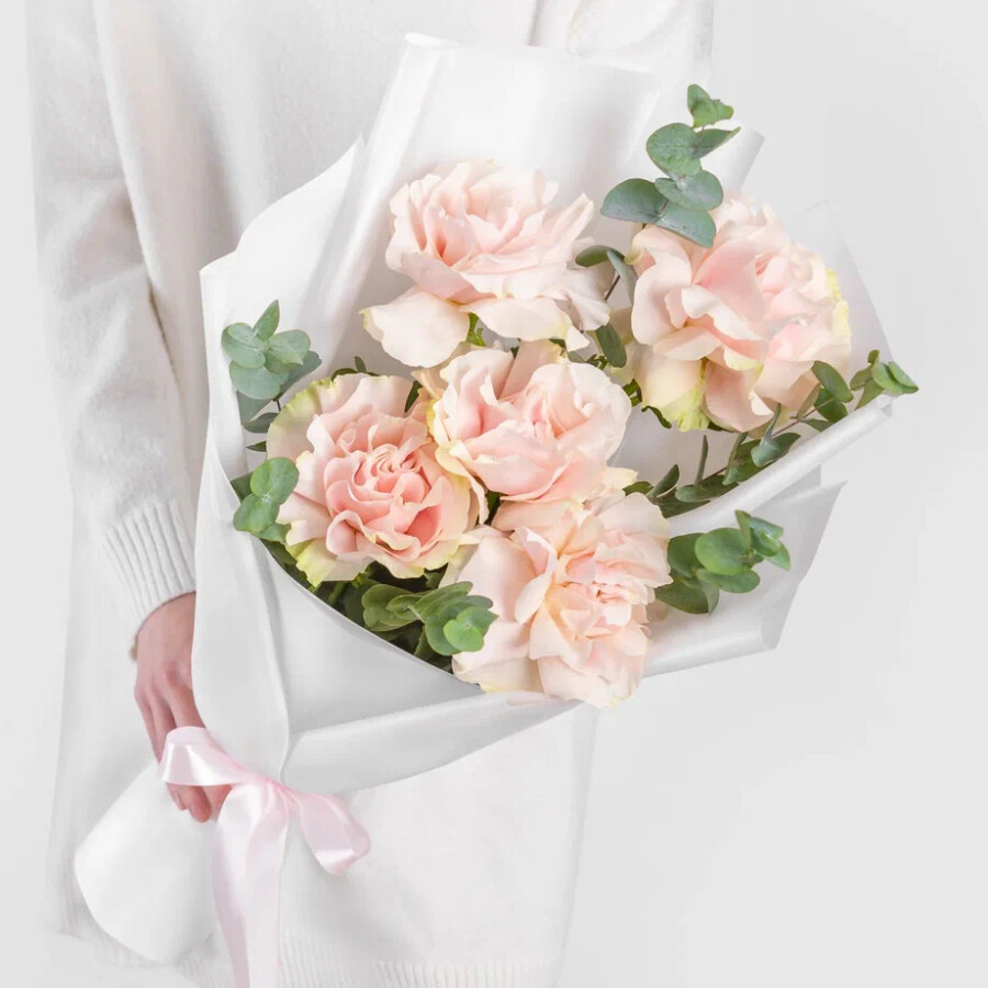 Букет дня "5 Французских Розовых Роз с эвкалиптом"