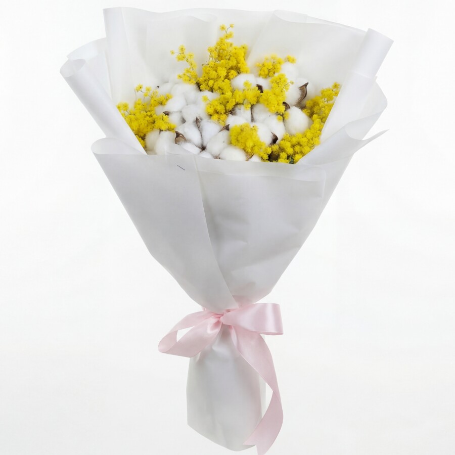 Букет дня "Хлопок и Мимоза" в упаковке