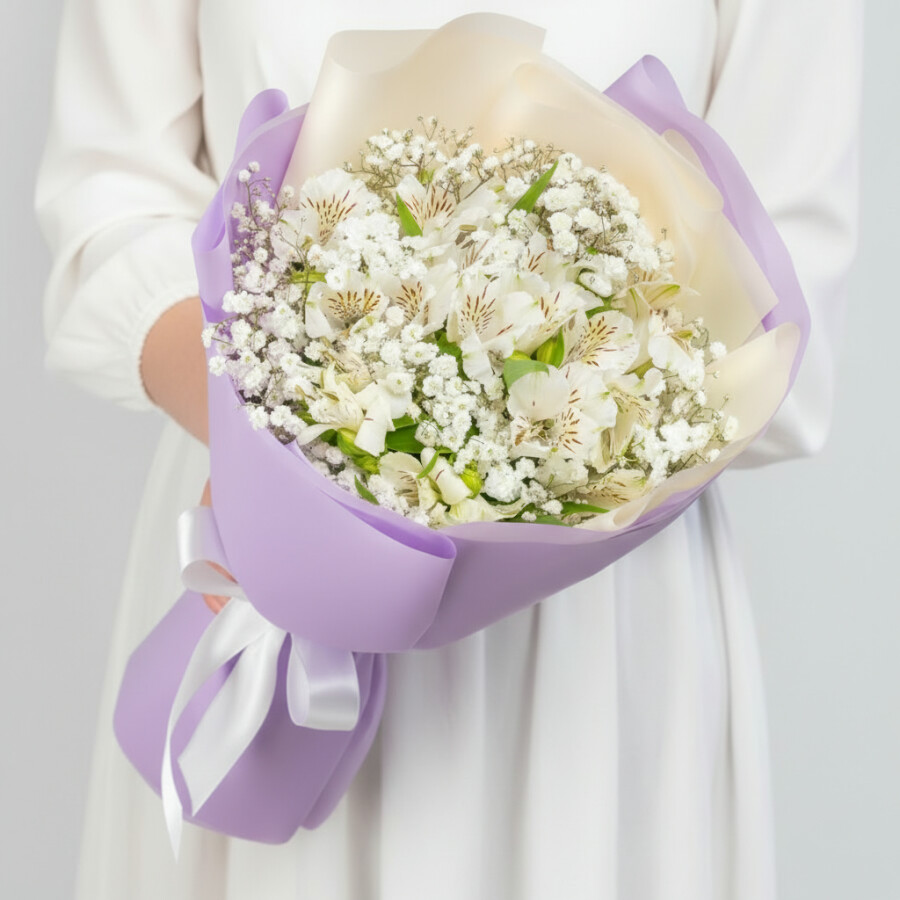 Букет "Альстромерии Белые и Гипсофилы Белые"
