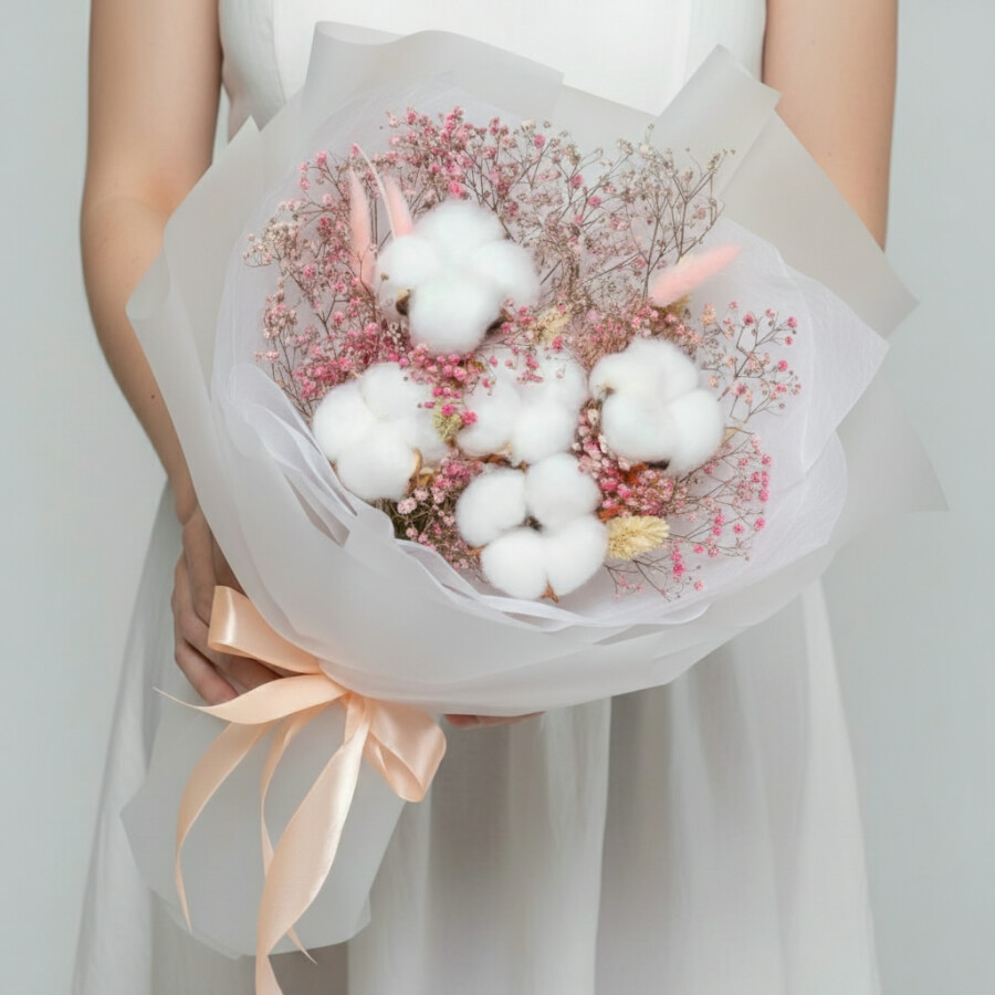 Букет "Гипсофила, Хлопок, Лагурус, Фалярис" сухоцвет