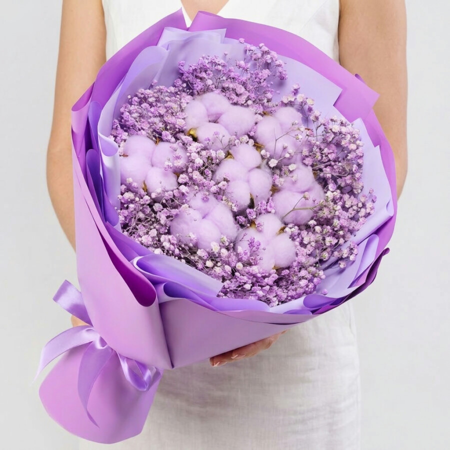 Букет "Гипсофила и Сиреневый Хлопок" сухоцвет