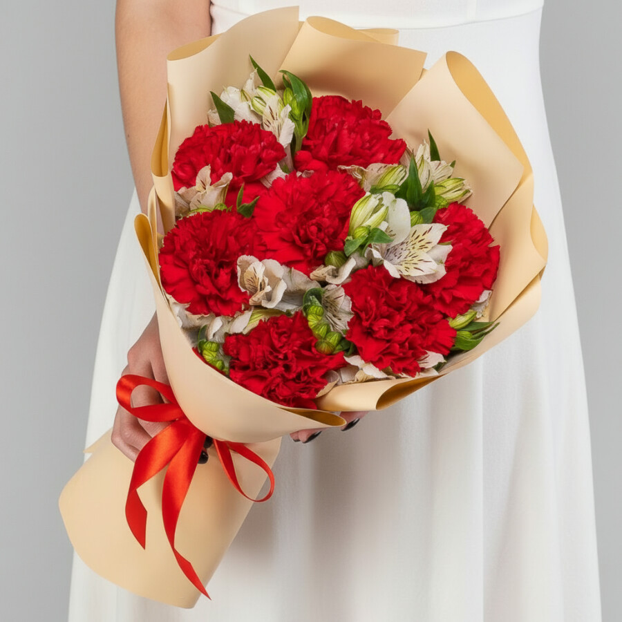 Букет "Альстромерии Белые и Гвоздики Красные"