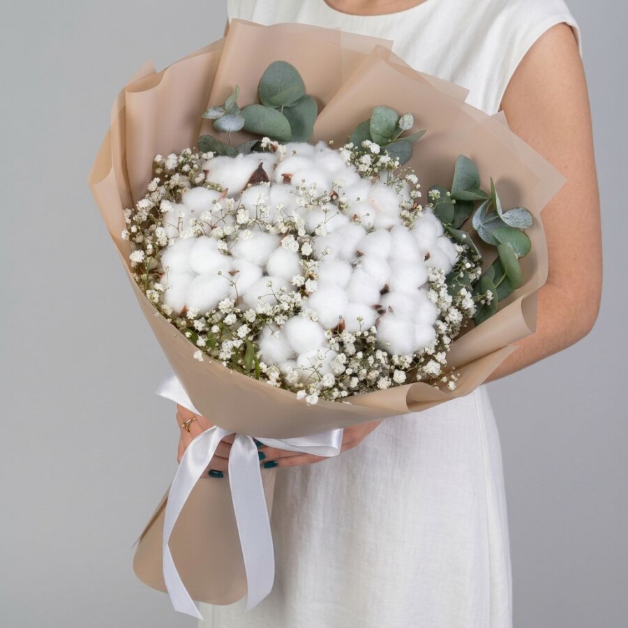 Букет "Хлопок и Гипсофила Миди" сухоцвет