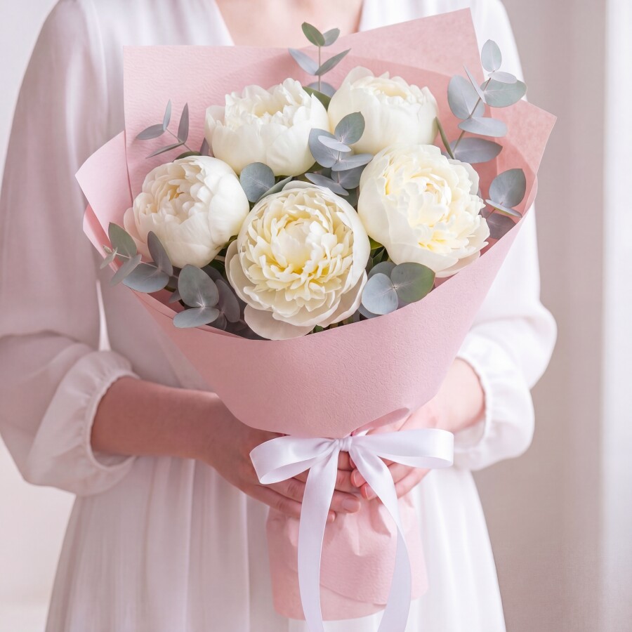 Букет "Пионы Белые и Эвкалипт Цинерия"