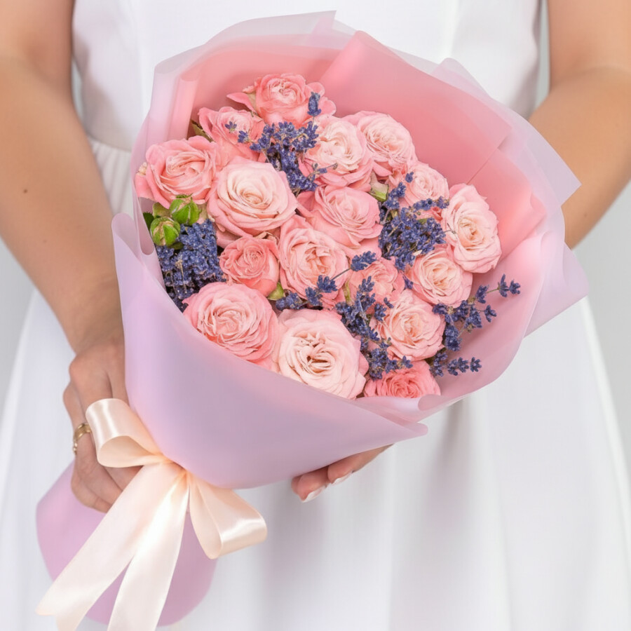 Букет "Роза Корал Йо Йо и Лаванда"