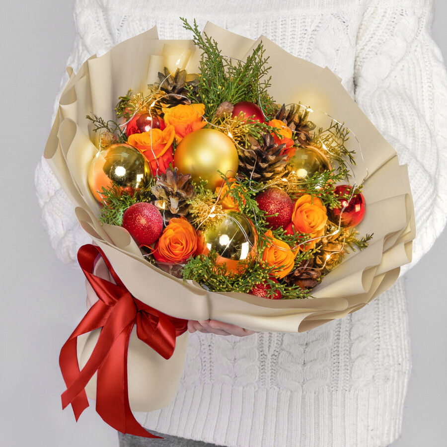 Новогодний букет "Рождественское Тепло" с гирляндой