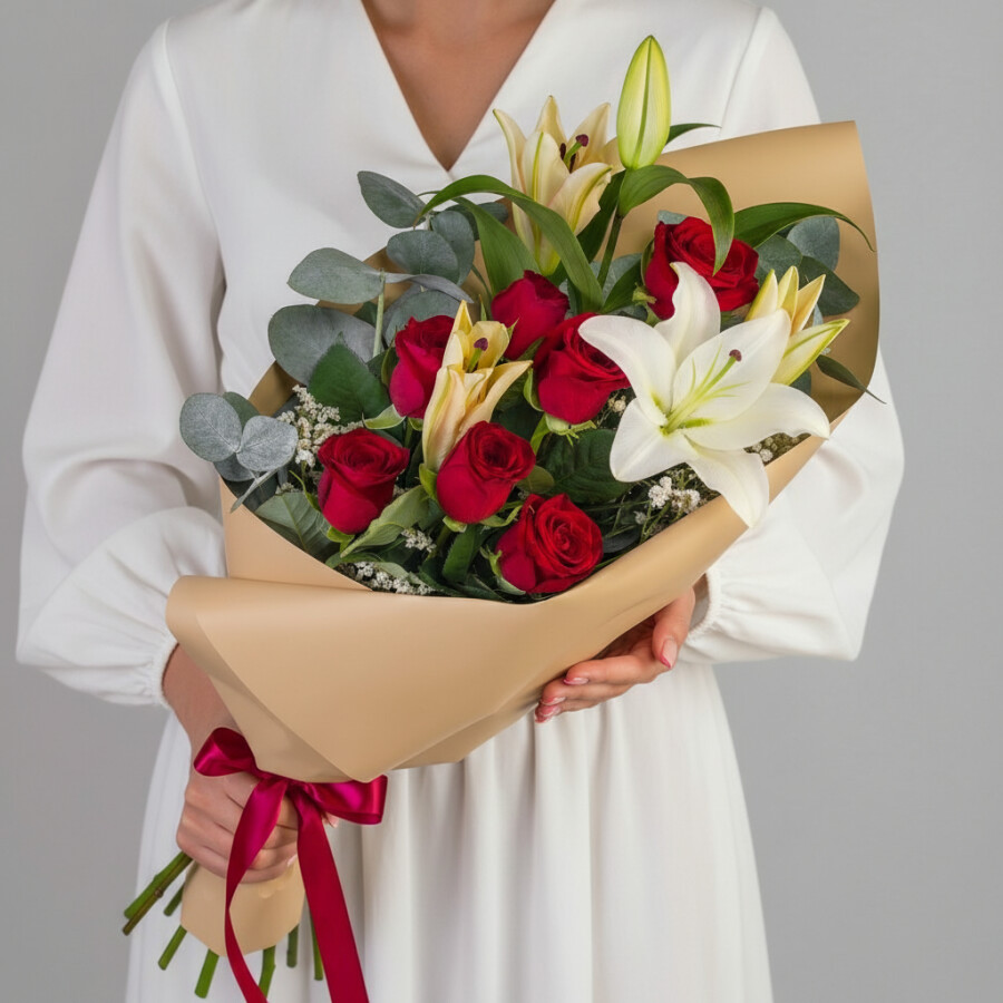 Фото букета перед доставкой в WhatsApp