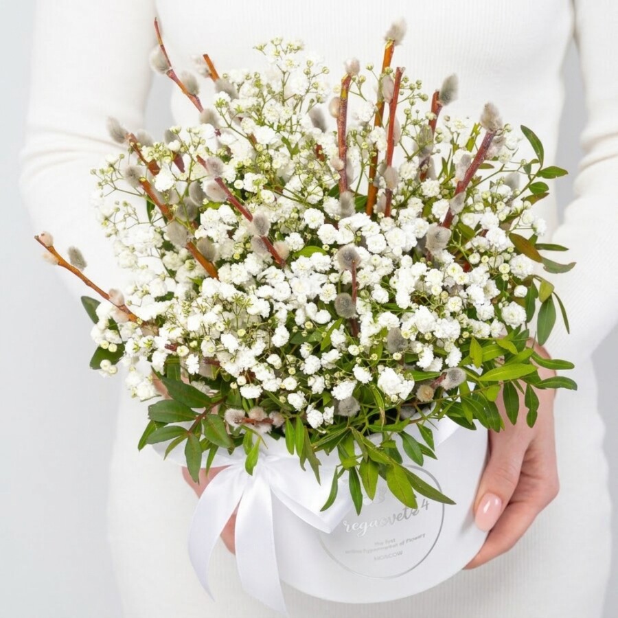 Букет "Верба и Белая Гипсофила" в коробке
