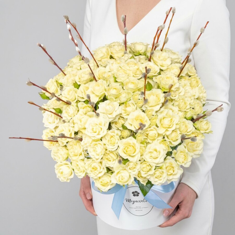 Букет "Верба и Роза Сноуфлейк" в коробке