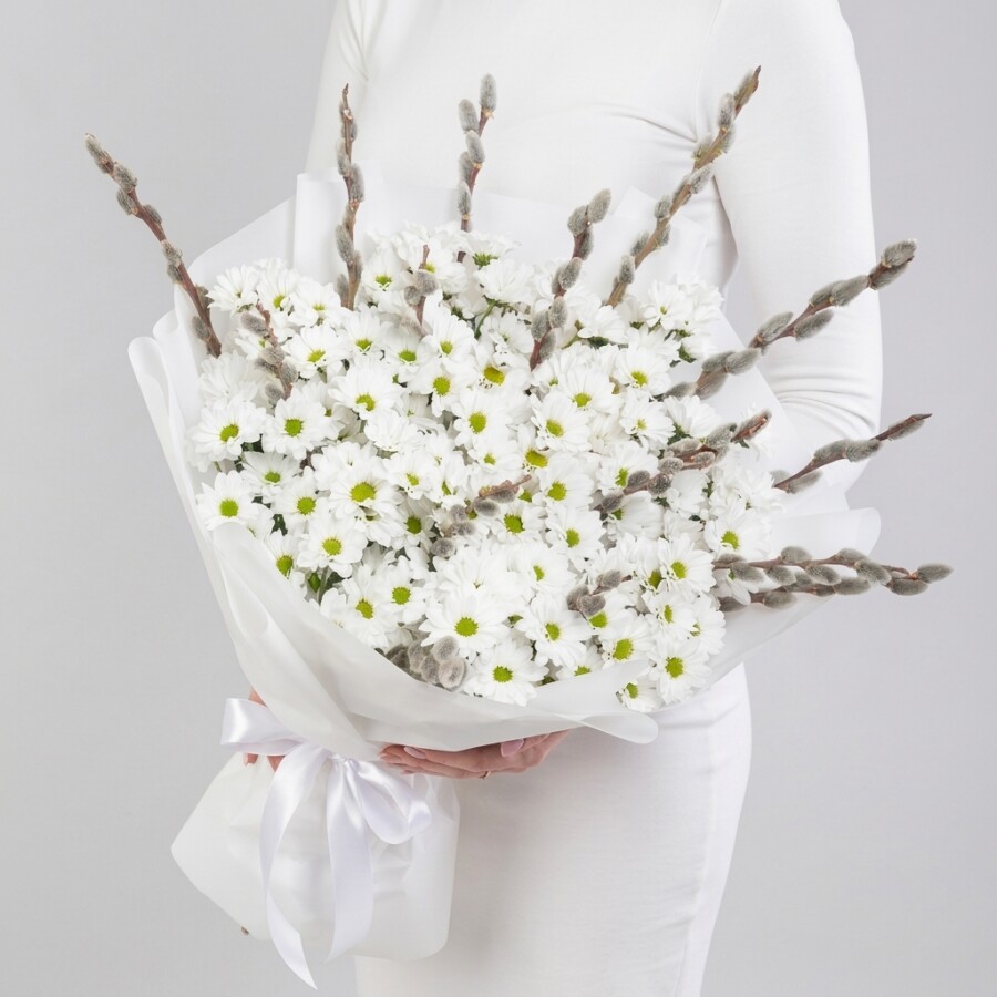 Букет "Верба и Хризантема Кустовая Ромашка"