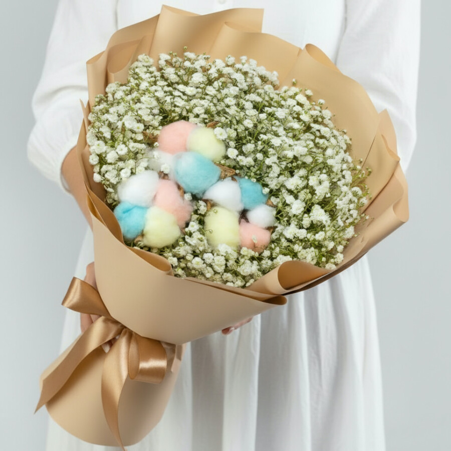 Букет "Гипсофила и Радужны Хлопок" мини сухоцвет