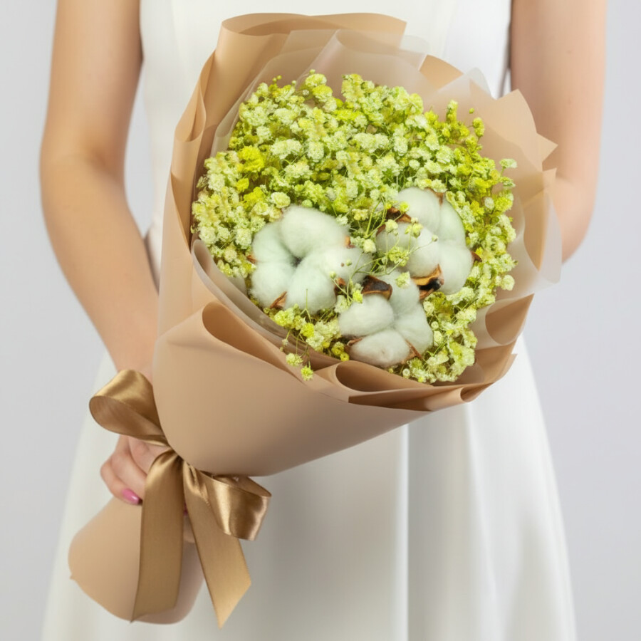 Букет "Гипсофила и Салатовый Хлопок" мини сухоцвет