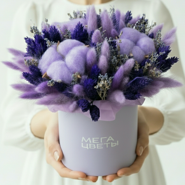 Букет "Лавандовый Цвет" в коробке сухоцвет