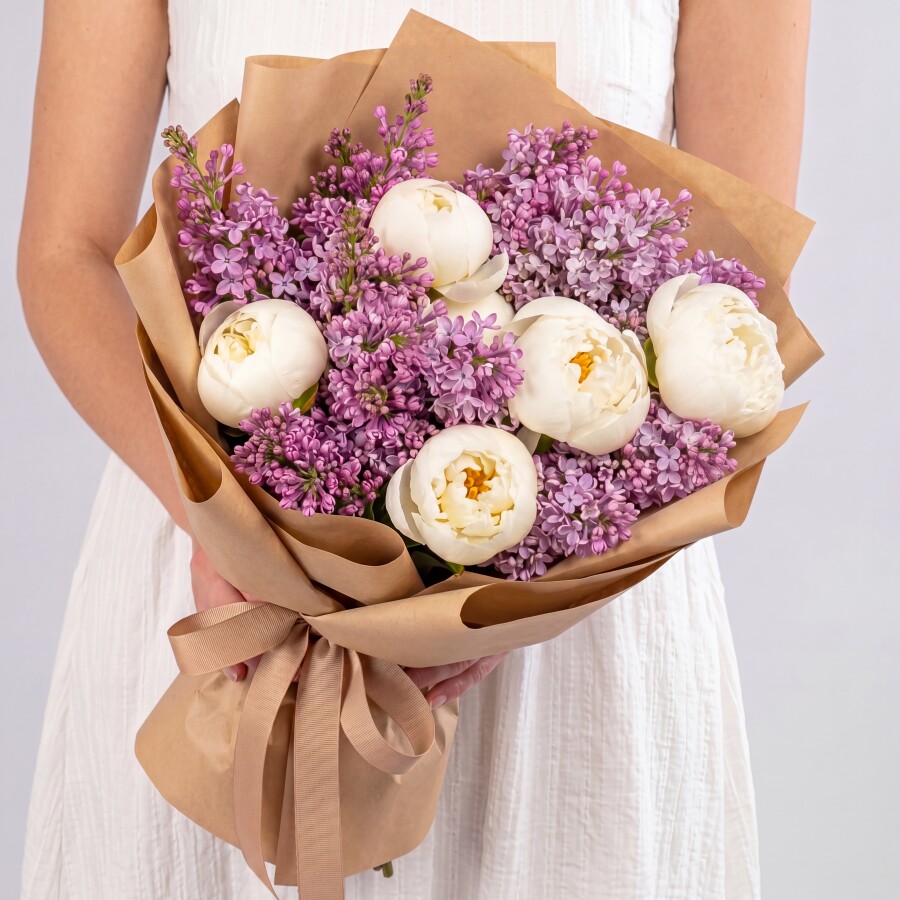 Букет "Сирень и Белые Пионы"