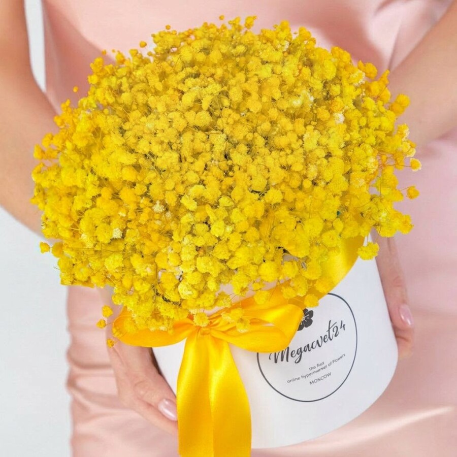 5 Желтых Гипсофил в коробке