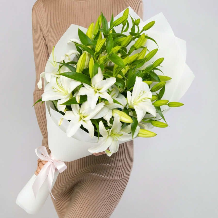5 Белых Восточных Лилий Замбези