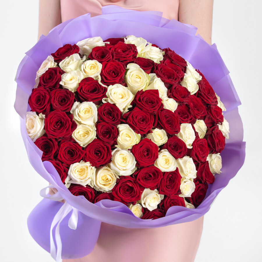 101 Белая и Красная Роза Ред Наоми и Аваланж (40 см)
