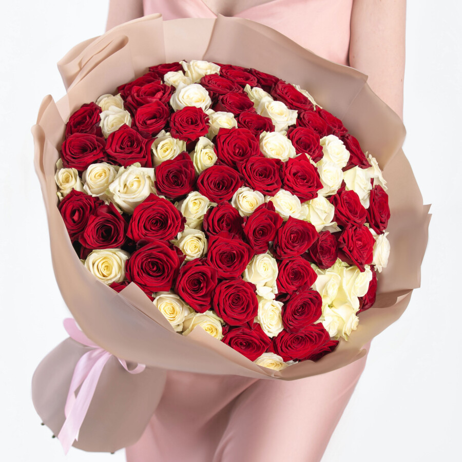 101 Красная и Белая Роза Ред Наоми и Аваланж (50 см)
