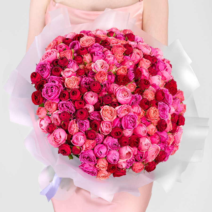 101 Разноцветная Кустовая Пионовидная Роза Микс (50 см)