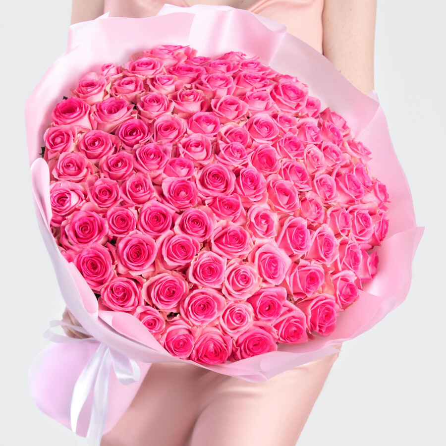 Купить букет 101 ярко-розовых роз в Москве