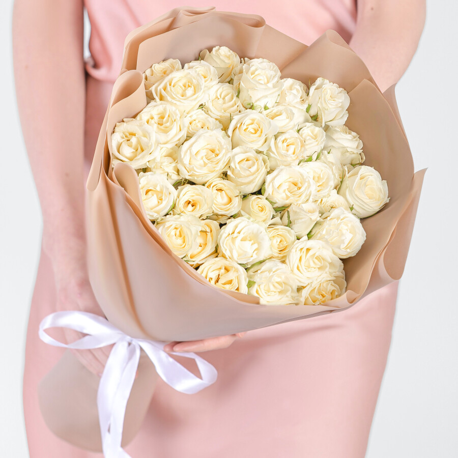 15 Белых Кустовых Роз Сноуфлейк (60 см)