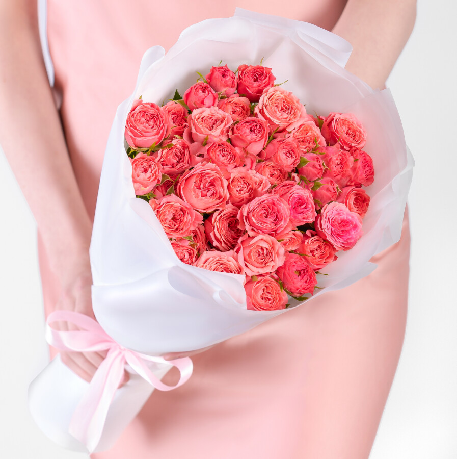 15 Коралловых Кустовых Пионовидных Роз Корал Йо-Йо (40 см)