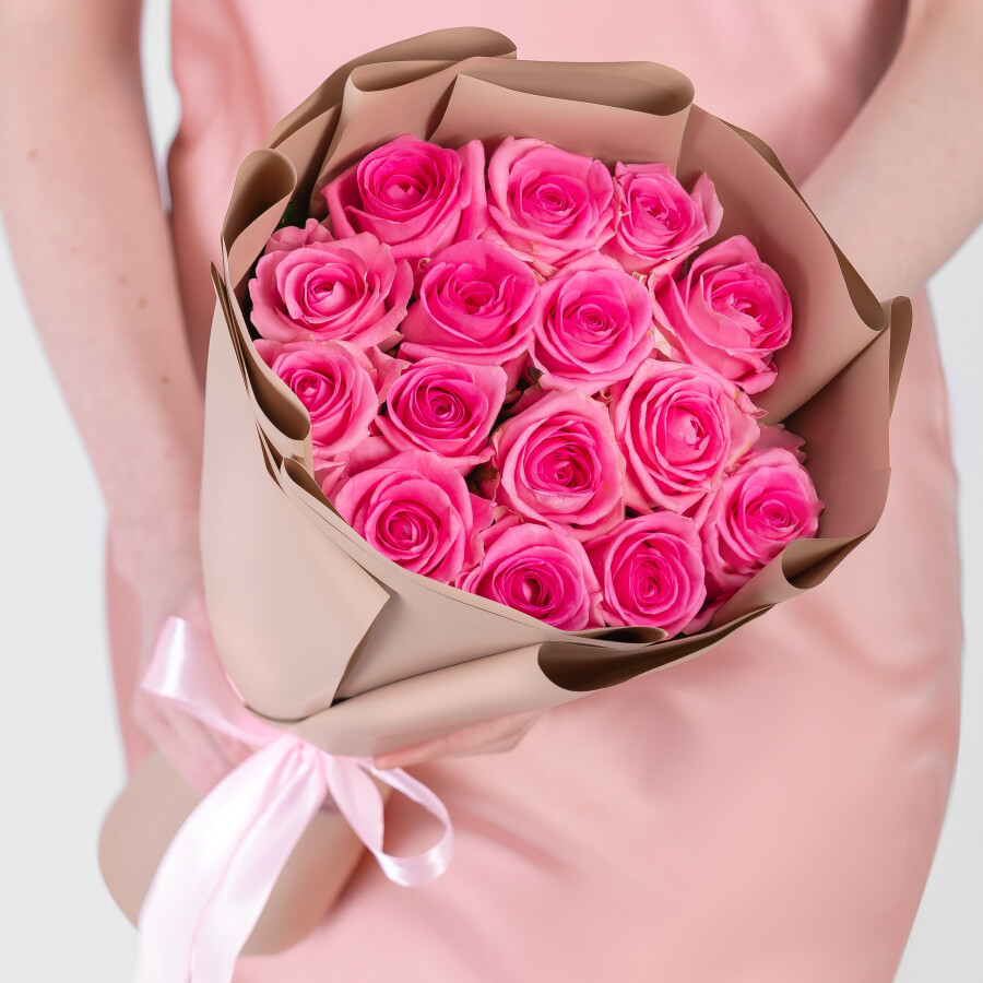 15 Ярко-Розовых Роз Ревиваль (40 см)
