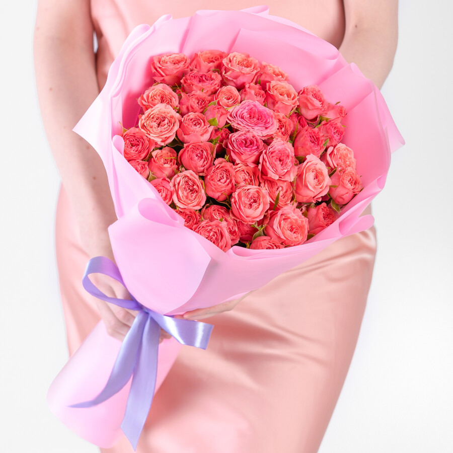 19 Коралловых Кустовых Пионовидных Роз Корал Йо Йо (60 см)