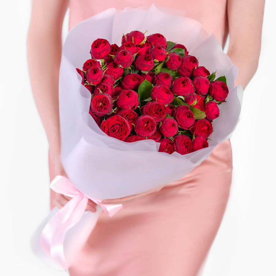 19 Красных Кустовых Пионоивидных Роз Марун (60 см)