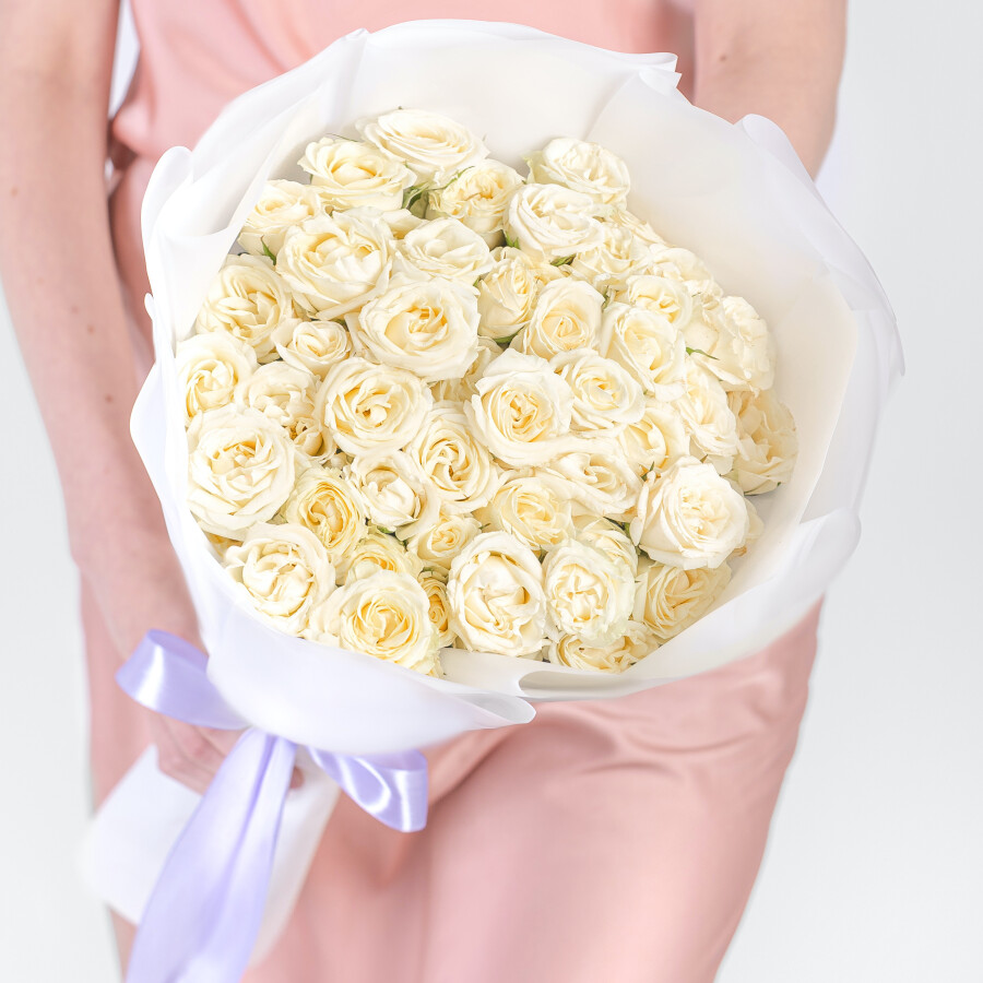 19 Белых Кустовых Роз Сноуфлейк (40 см)