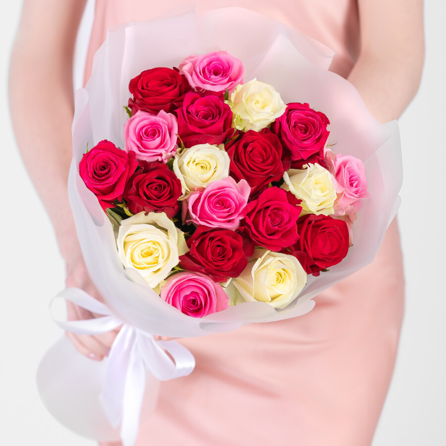 19 Разноцветных Роз Микс (40 см)