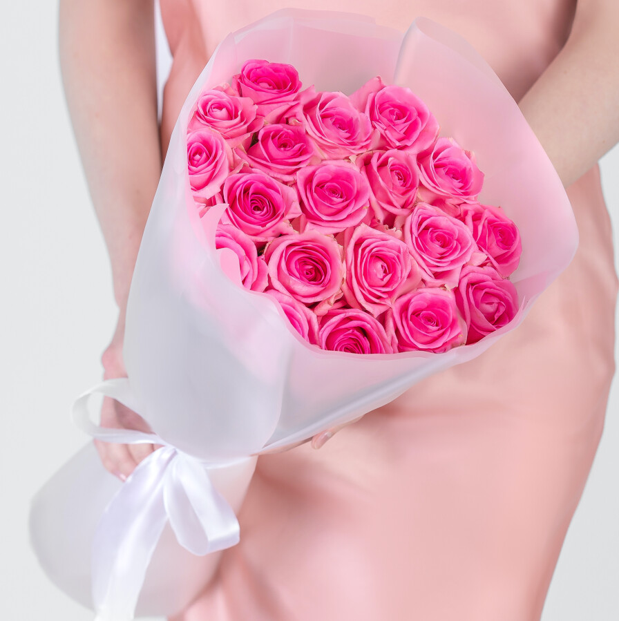 19 Ярко-Розовых Роз Ревиваль (40 см)