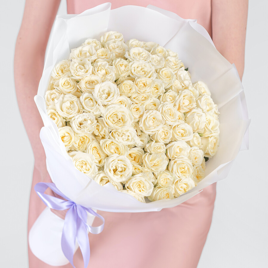25 Белых Кустовых Роз Сноуфлейк (60 см)