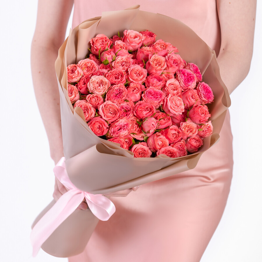 25 Коралловых Кустовых Пионовидных Роз Корал Йо Йо (50 см)