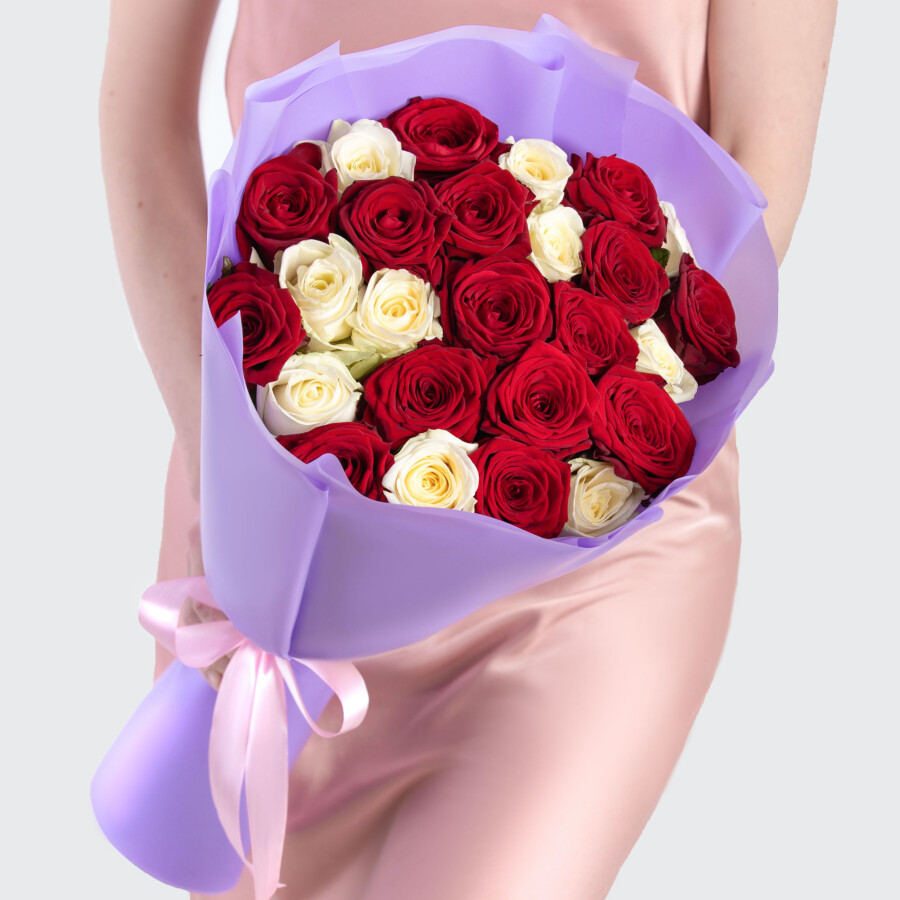 25 Красных и Белых Роз Ред Наоми и Аваланж (50 см)