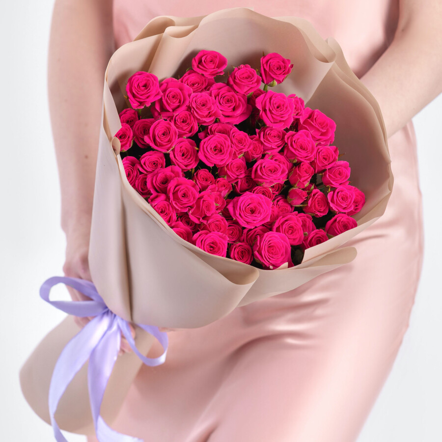 25 Малиновых Кустовых Роз Лиана (60 см)