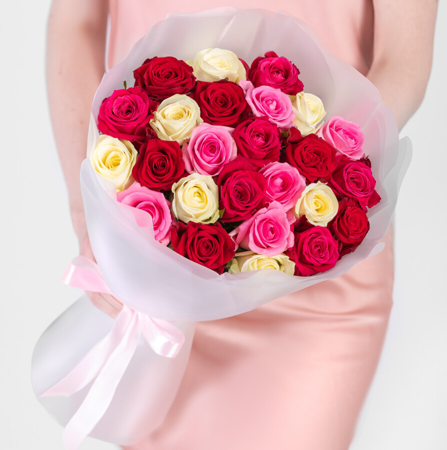 Роза микс по цвету может отличаться от фотографии, согласовать конкретные цвета или цвета как на фото - нельзя.