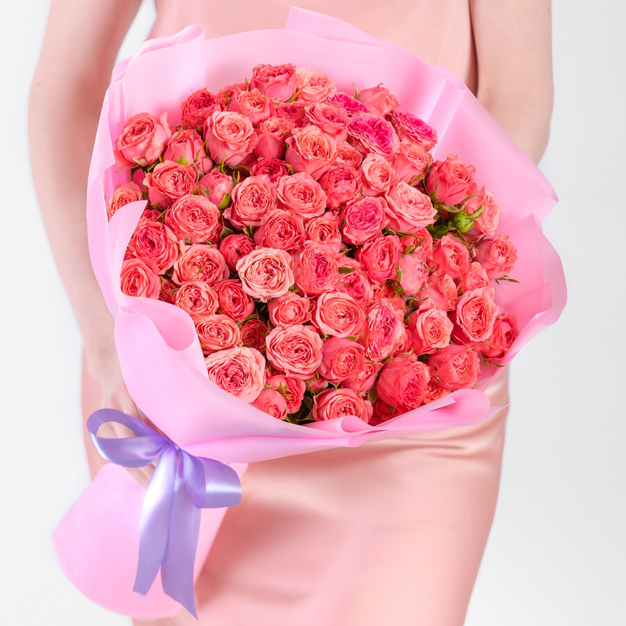 35 Коралловых Кустовых Пионовидных Роз Корал Йо Йо (50 см)