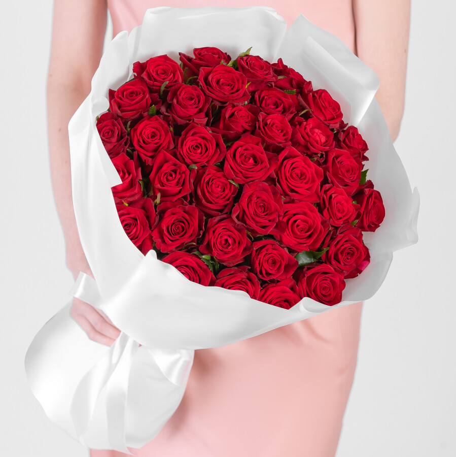 Букет "Явное Влечение" – это 35 Красных Роз (60 см.) с крупными бутонами, салал и красивое оформление с помощью ленты под тон лепесткам. Данная флористическая композиция – это уже не просто намек на чувства или выражение уважения и симпатии, а прямое признание в любви. Красные розы – символ любви, страсти и вдохновения, поэтому такой букет даже без слов скажет о главном и безусловно порадует получателя.
