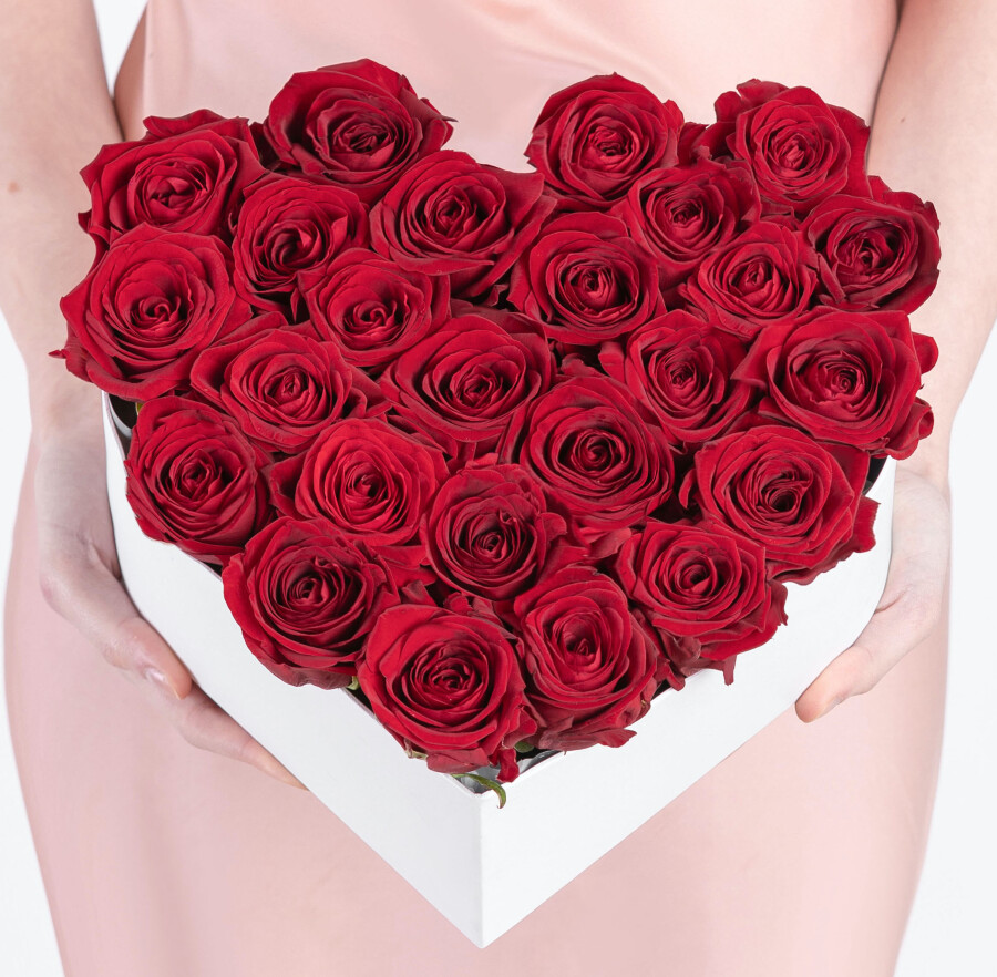 35 Красных Роз Аваланж в коробке сердце