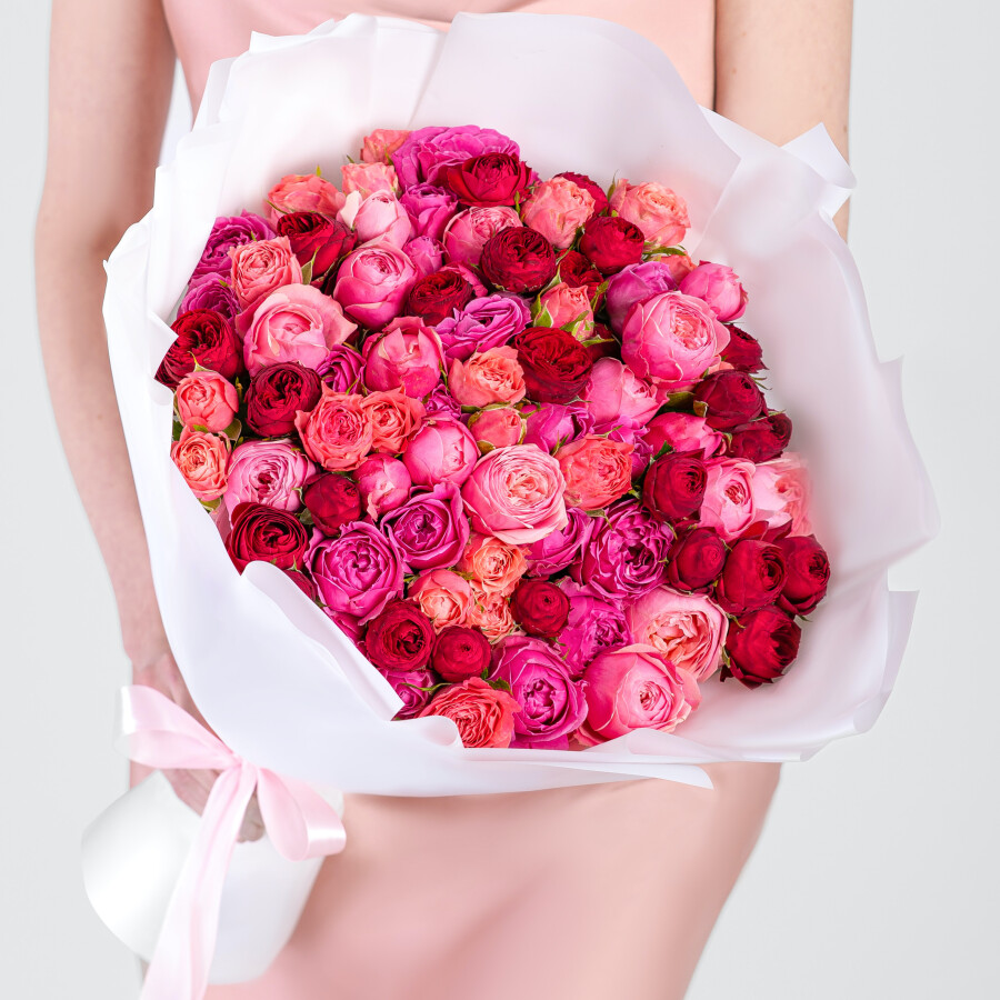 35 Разноцветных Кустовых Пионовидных Роз Микс (50 см)
