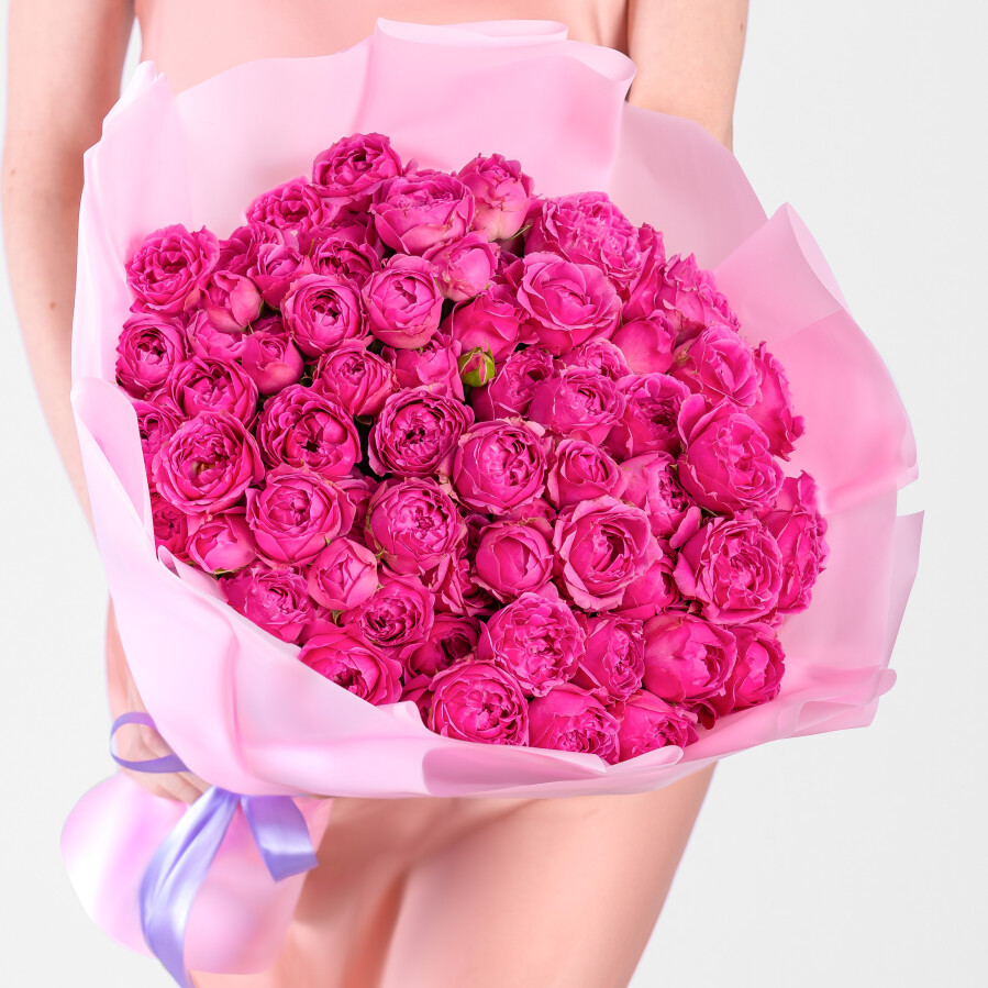 35 Малиновых Кустовых Пионовидных Роз Мисти Баблс (50 см)