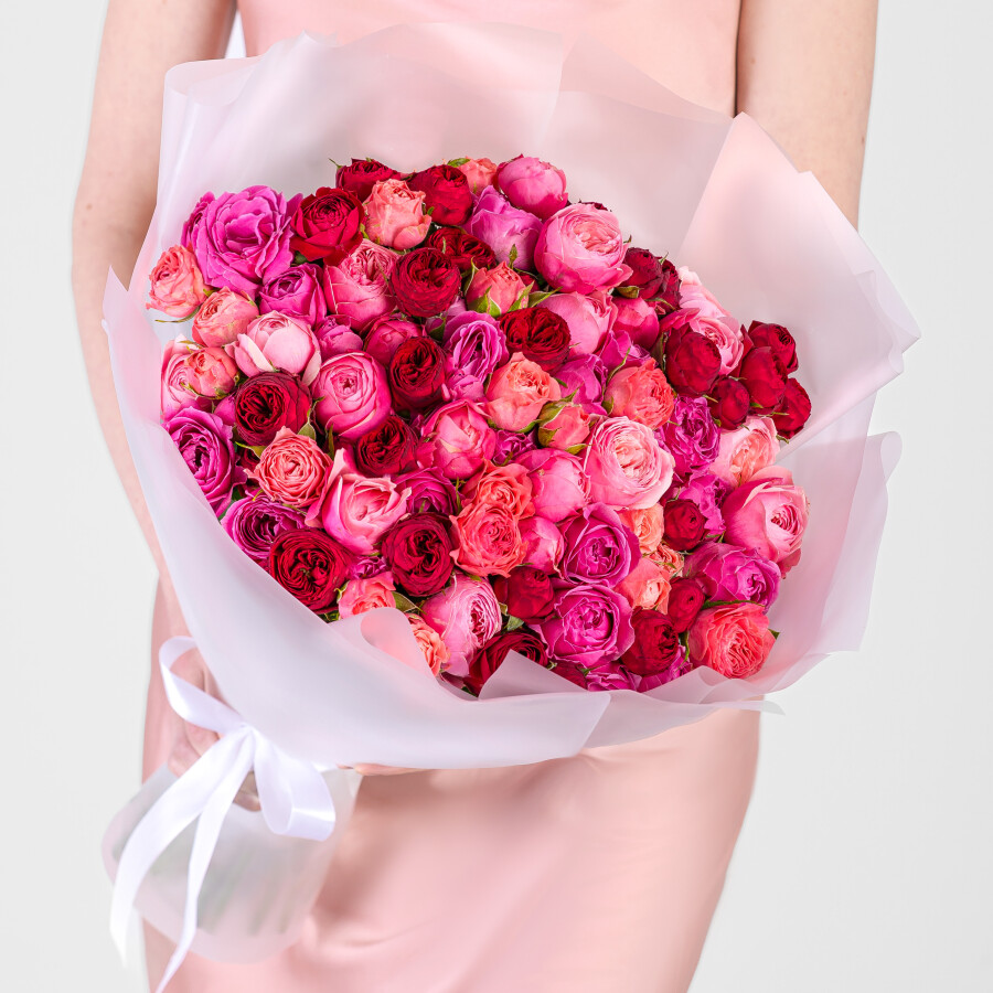 35 Разноцветных Кустовых Пионовидных Роз Микс (60 см)