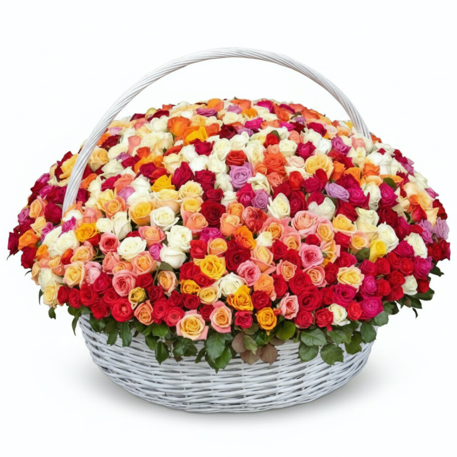 501 Разноцветная Роза Микс в корзине
