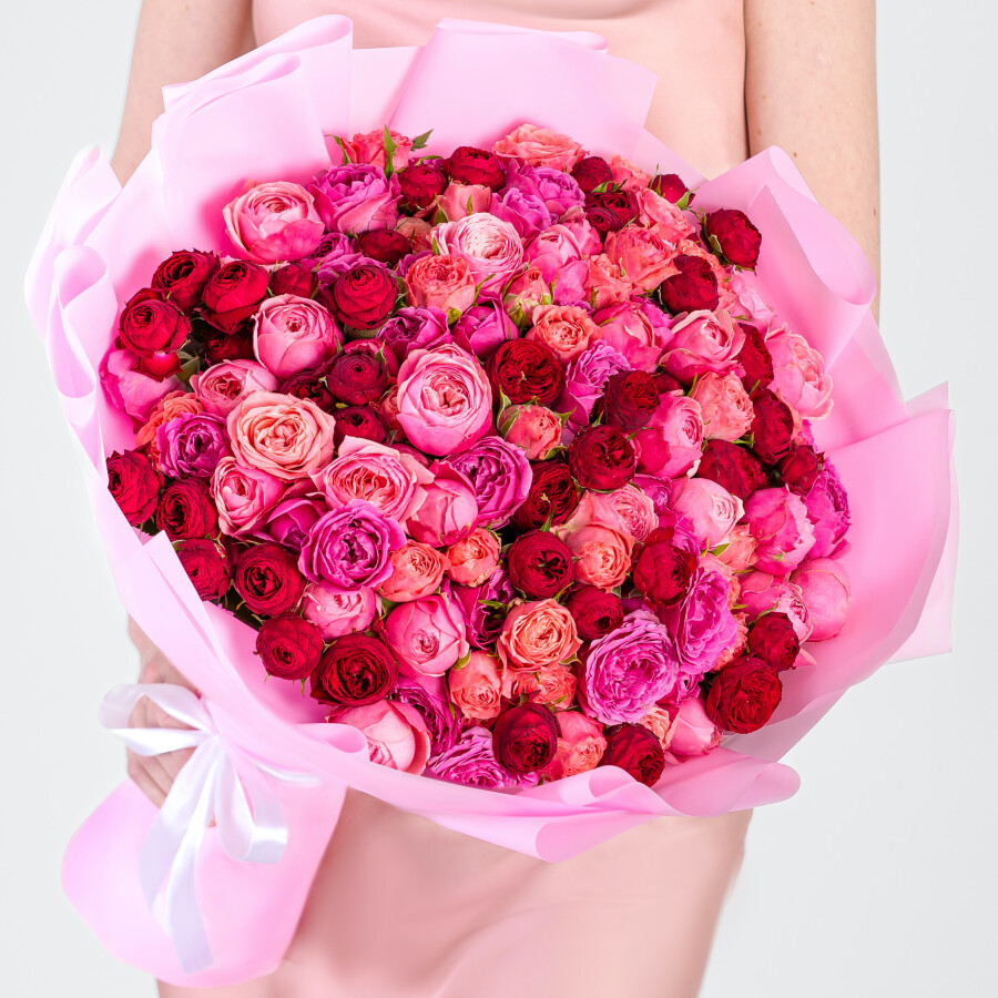 51 Разноцветная Кустовая Пионовидная Роза Микс (50 см)